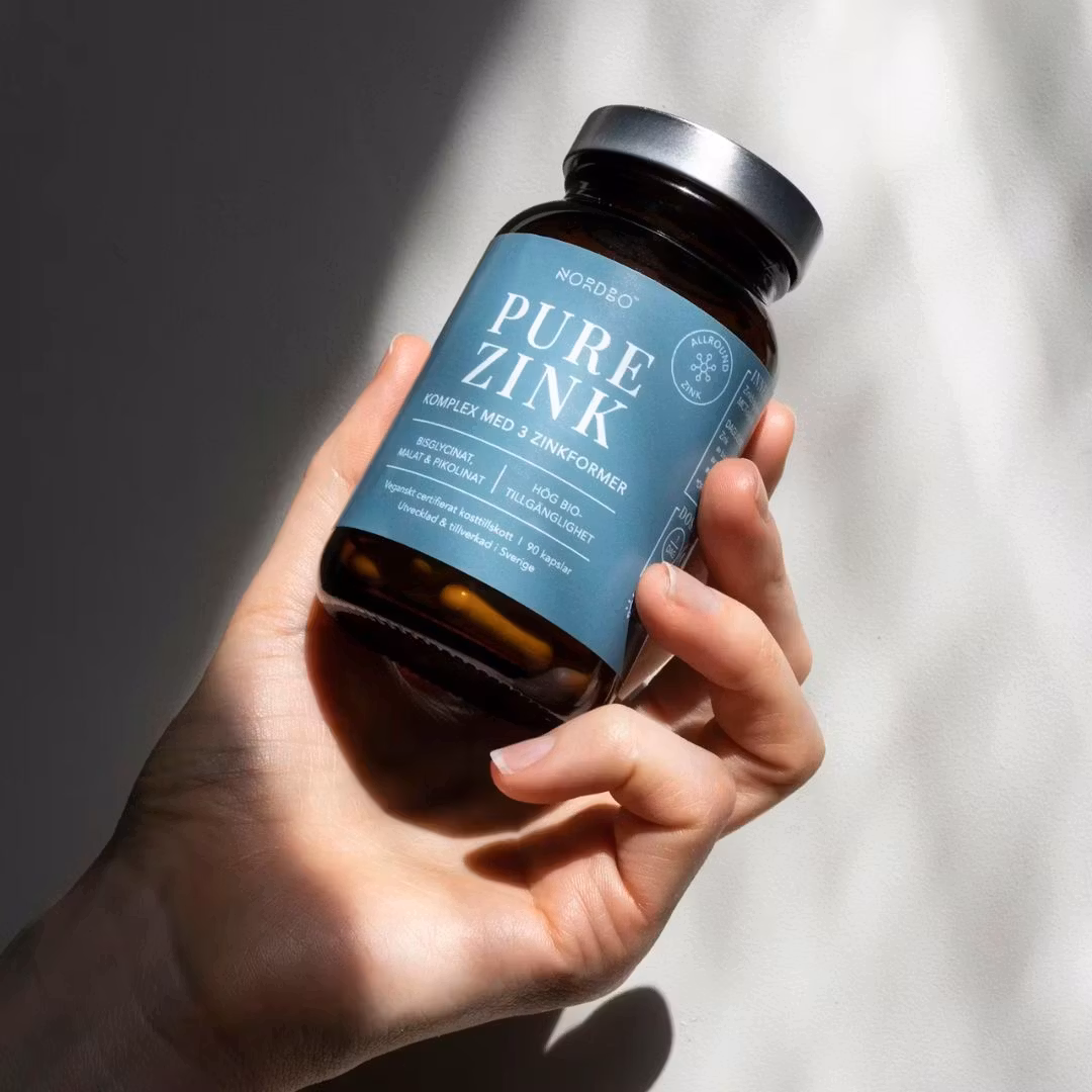 NORDBO Pure Zink är en allround-zink med tre sorters kelaterad zink med hög biotillgänglighet: zinkbisglycinat, zinkpikolinat och zinkm