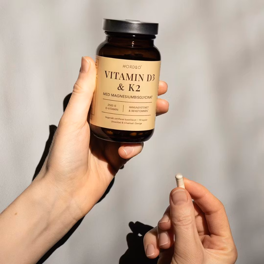 NORDBO Vitamin D3 & K2 är en smart kombination för immunsystem och benstomme, boostad med magnesiumbisglycinat.