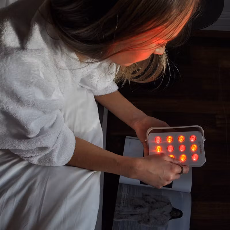 The Robin Gen 2 är den senaste versionen av vår bästsäljande, bärbara rödljuslampa – nu med slät front, smidigt handtag & medföljande förvaringsbox. Den är designad för målinriktad ljusbehandling av mindre ytor och lämpar sig utmärkt för dagligt stöd av hudhälsa, återhämtning och energinivåer. Med 12 LED-dioder som avger ljus i 660 nm (rött ljus) och 850 nm (nära infrarött ljus), främjar lampan cellenergi, kollagenproduktion & lokal cirkulation. Den moderna designen gör användningen enkel både hemma och på resan.