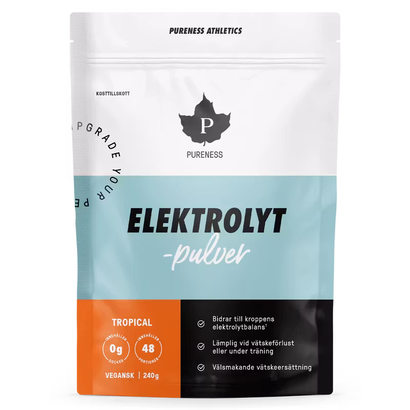 Pureness elektrolytpulver är framtaget och tillverkad i Finland. Praktisk måttsked ingår. Varje dos (5 g) innehåller endast 0,1 g kolhydrater.