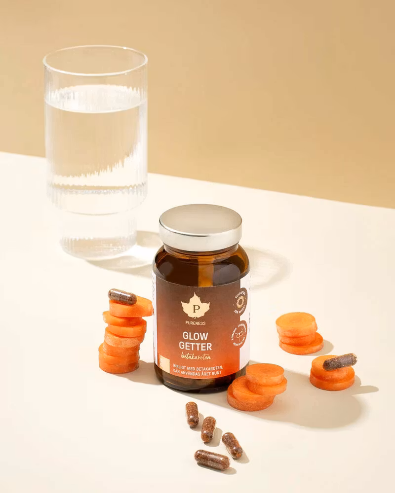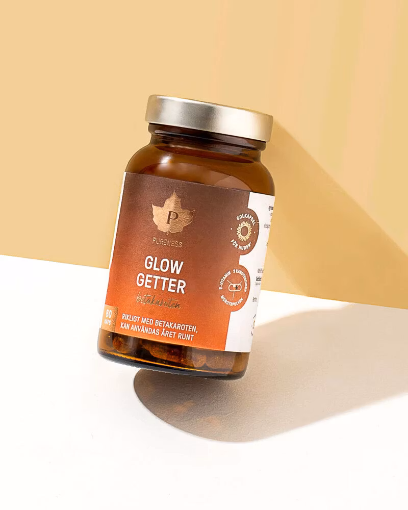 Vårens och sommarens must-have för dig som vill ha en hud med GLOW (eller ge liv i en vinterglåmig hud)!Pureness Glow Getter är en solkapsel med betakaroten av