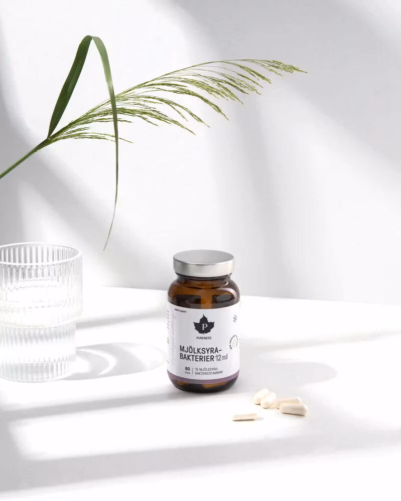 Mjölksyrabakterier 12 md för en effektiv matsmältning och frisk tarmflora. En kapsel innehåller hela 12 miljarder mjölksyrabakterier!Produkten innehåller 15 kän