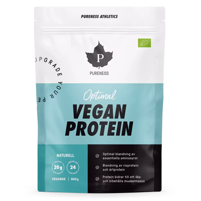 Pureness Optimal Vegan Protein är ett högkvalitativt vegetabiliskt 80 % protein framställt genom att blanda fullkornsrisprotein och ärtprotein tillsammans.