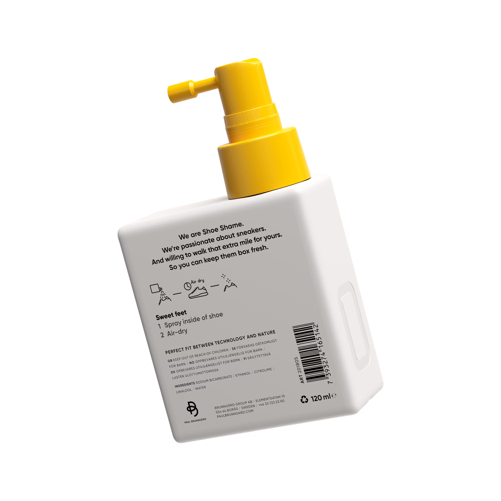 Vattenbaserad skodeodorant för fräscha sneakers på insidan. Lättanvänd spraydeo som lämnar en unik fräsch Shoe Shame-doft, aktiv i 24 timmar. Lämplig för alla t