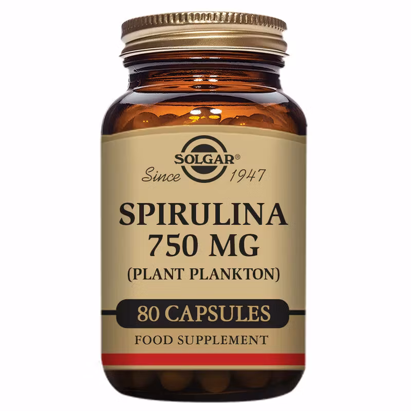 Solgar® Spirulina 750 mg är ett kosttillskott innehållande spirulina, en mikroskopisk växtorganism.