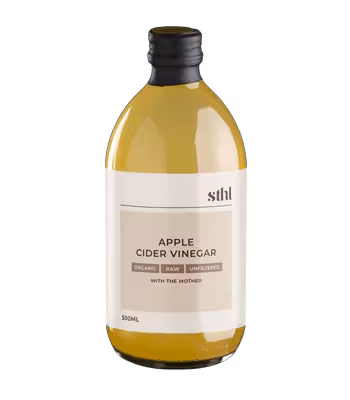 Äppelcidervinäger är gjord av rena, ekologiska äpplen av hög kvalitet. Den är rå, ofiltrerad och innehåller "mamma" som är en levande blandning av välgörande bakterier, mineraler och enzymer.