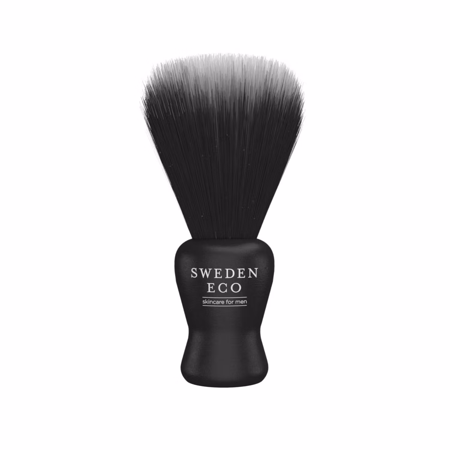 En vegansk rakborste där borsten är tillverkad av återvunna fibrer från PET-flaskor. Detta gör att borsten får längre livslängd, torkar snabbare, kräver mi