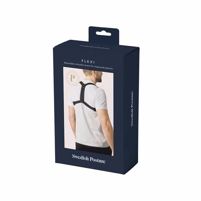 Swedish Posture Hållningsband är ett praktiskt hjälpmedel för en bättre hållning. Det fungerar som ett träningsredskap som aktiverar musklerna i rygg och axlar och påminner dig om att hålla en upprätt position.