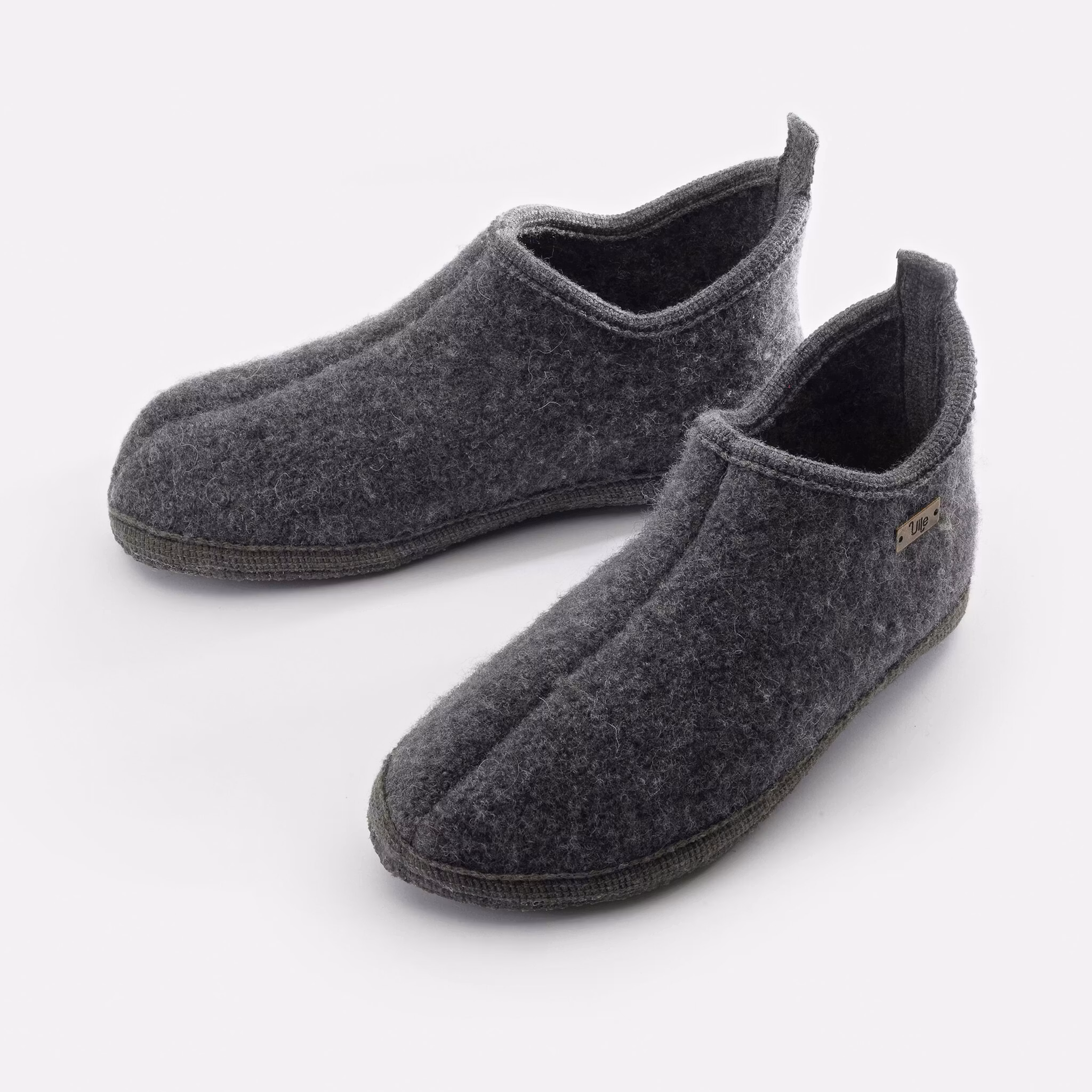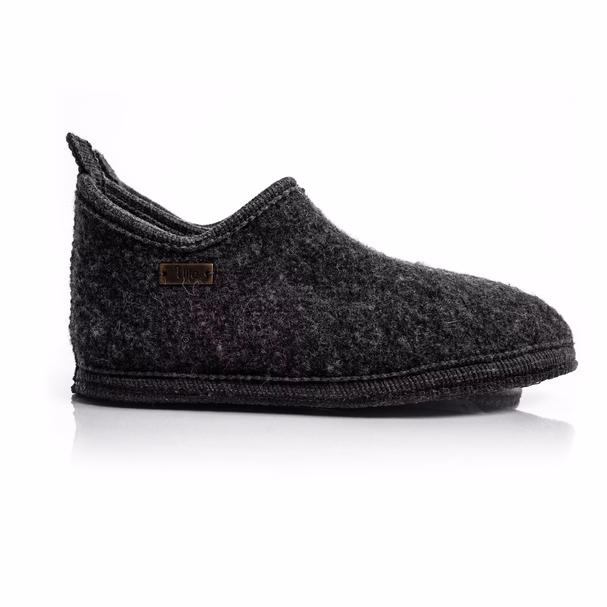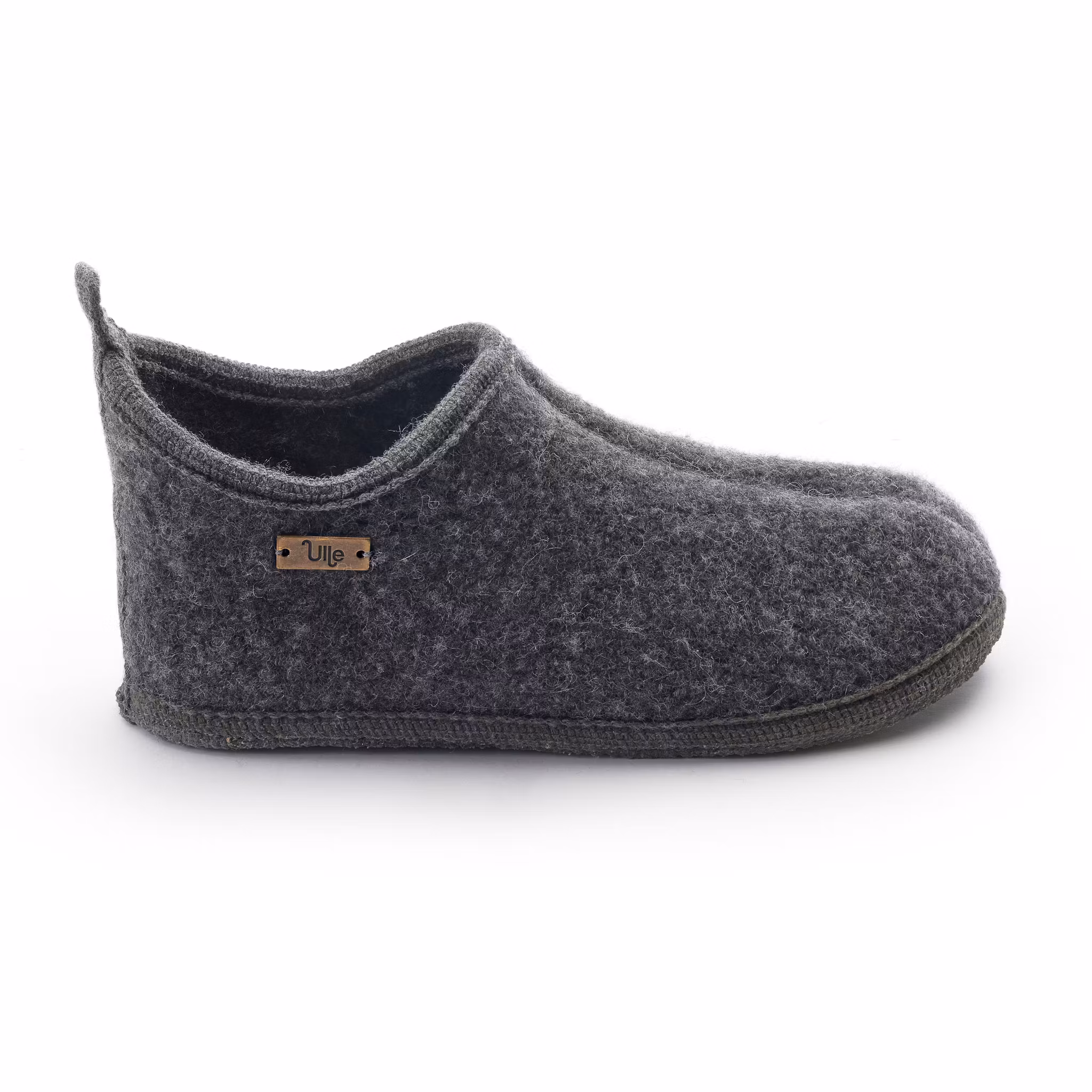 Det högkvalitativa ullgarnet är grunden till Ulles kvalitet. Garnet som används i tillverkningen är tvättat, stickat och tovat. När det stickade ullgarnet tumlas komprimeras materialet till en tät struktur. Tyget, som är mjukt och elastiskt, anpassar sig perfekt till foten för ett behagligt steg.