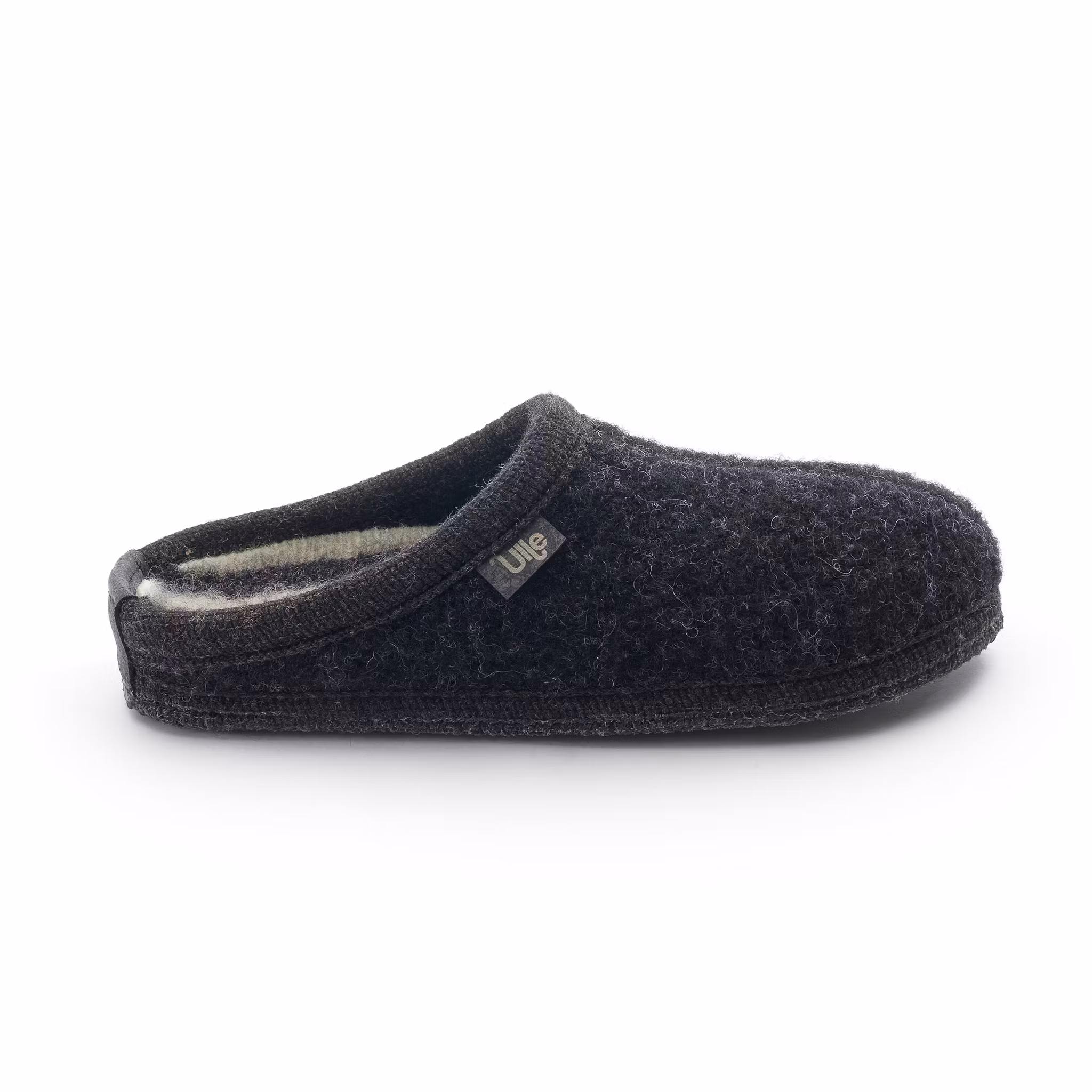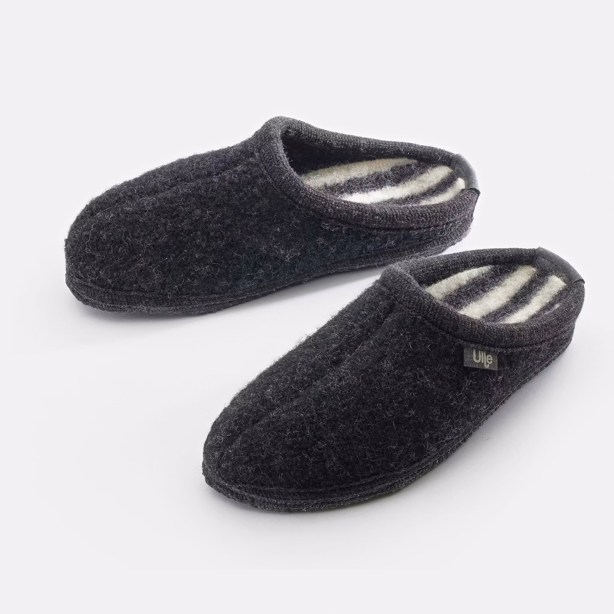 Det högkvalitativa ullgarnet är grunden till Ulles kvalitet. Garnet som används i tillverkningen är tvättat, stickat och tovat. När det stickade ullgarnet tumlas komprimeras materialet till en tät struktur. Tyget, som är mjukt och elastiskt, anpassar sig perfekt till foten för ett behagligt steg.