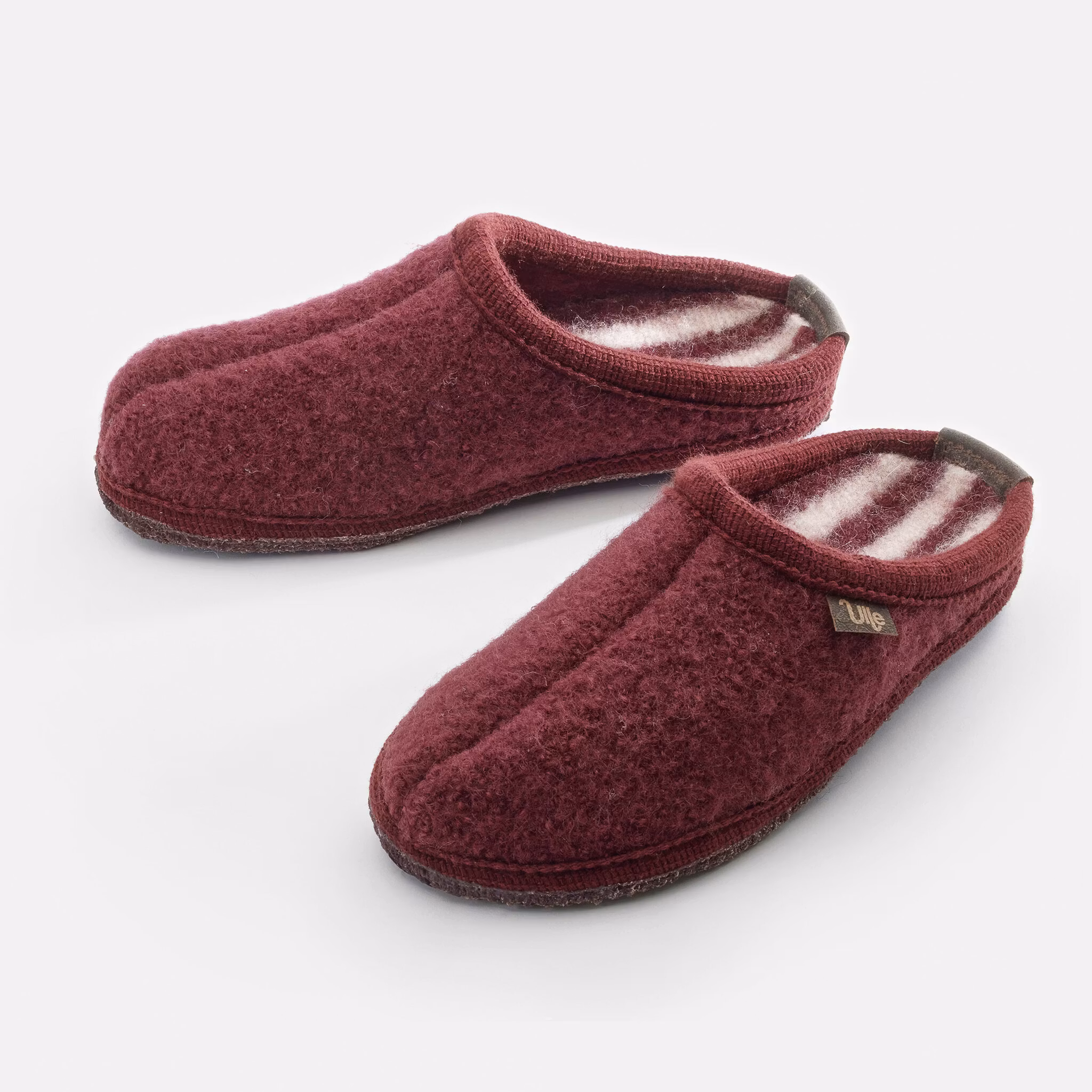 Ulltofflor i 100% ren ull med en klassisk design och randig innersula. Tofflorna kombinerar komfort och kvalitet med sitt naturmaterial och ortopediskt uppbyggda sula som ger stöd i häl och hålfot. Ulltofflorna formar sig efter foten, ger ergonomiskt stöd och håller en behaglig temperatur året om. Med halkfri sula och naturligt antibakteriella egenskaper är de både praktiska och bekväma.