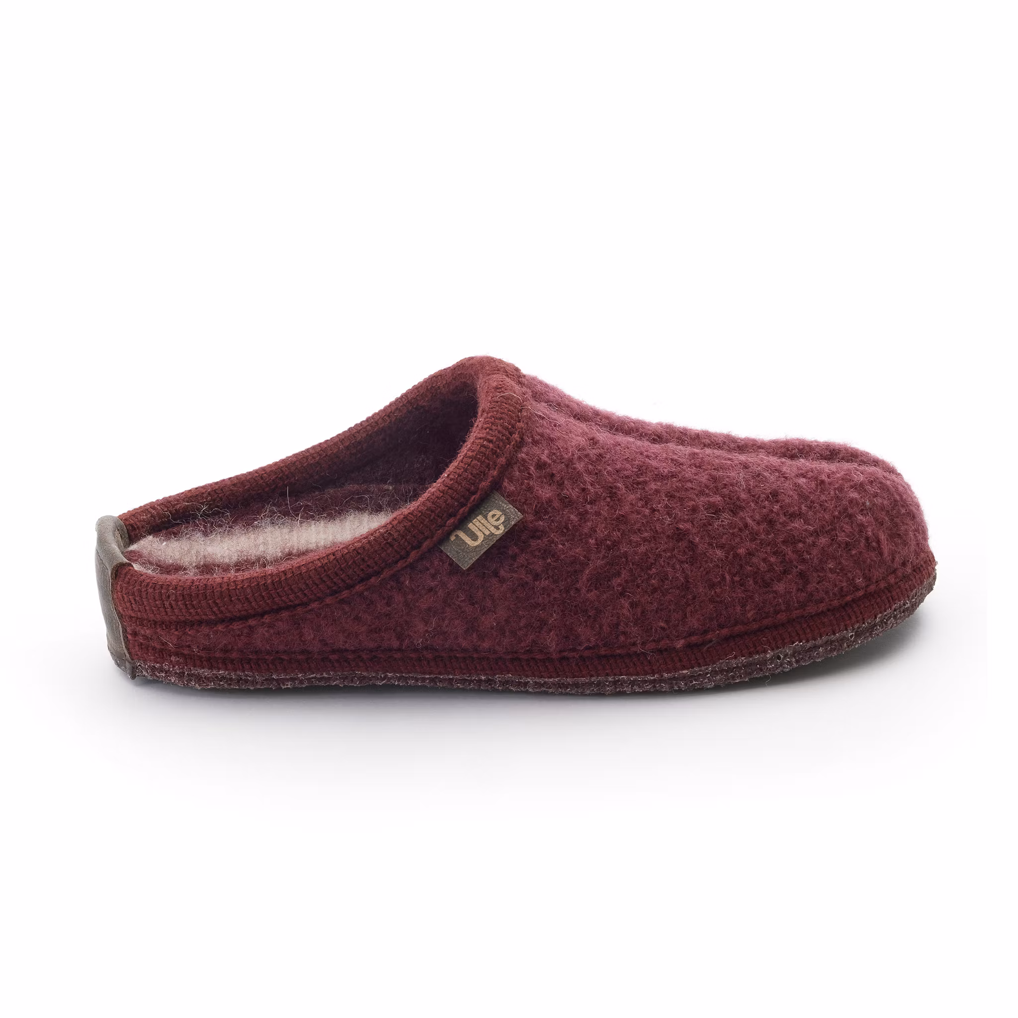 Det högkvalitativa ullgarnet är grunden till Ulles kvalitet. Garnet som används i tillverkningen är tvättat, stickat och tovat. När det stickade ullgarnet tumlas komprimeras materialet till en tät struktur. Tyget, som är mjukt och elastiskt, anpassar sig perfekt till foten för ett behagligt steg.